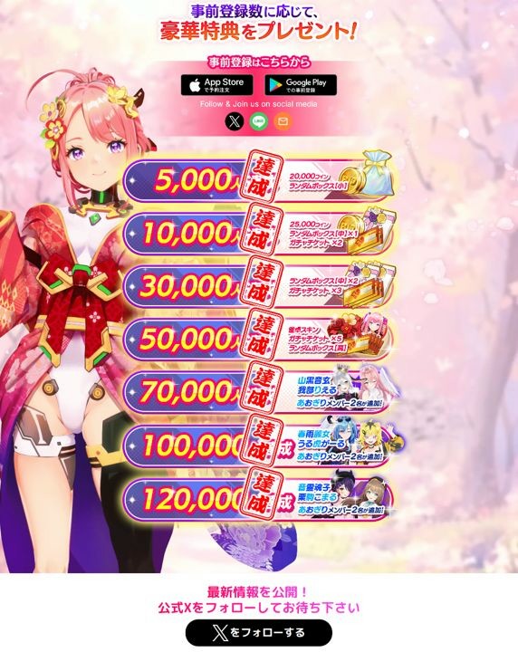 事前登録数12万人を達成し全ての事前登録特典の配布が決定。